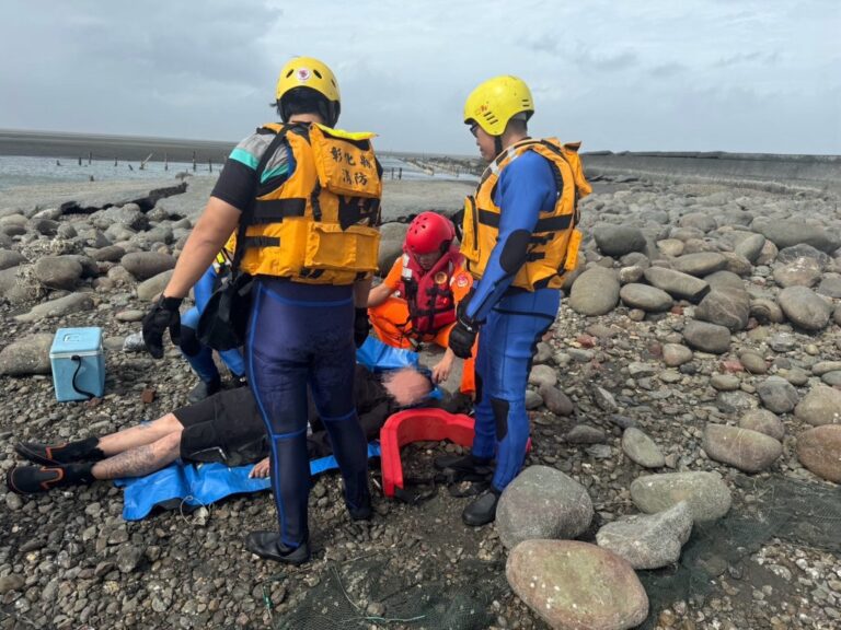 消防及海巡人員趕往漢寶蚵道民眾暈倒地點…