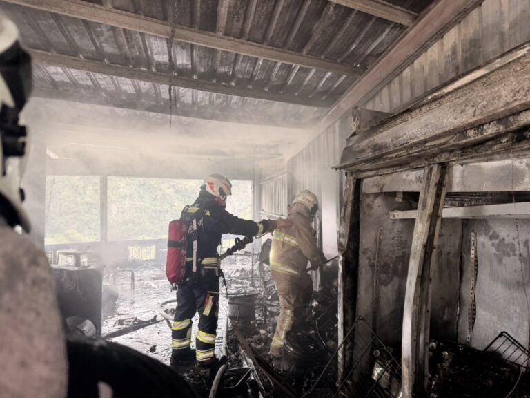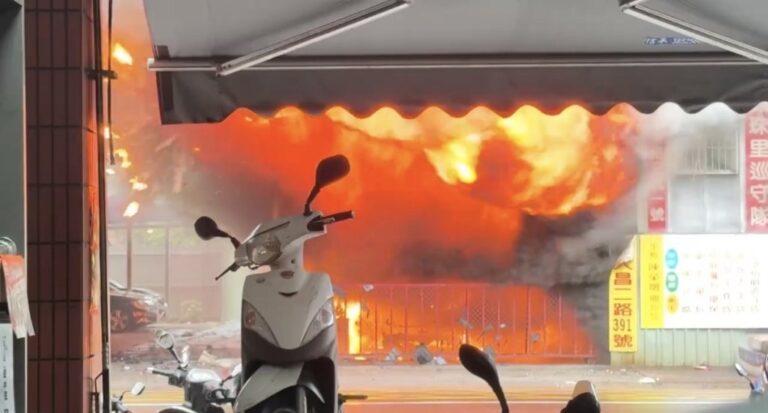 新竹縣五峰鄉小吃部火警,消防隊員到場灌…