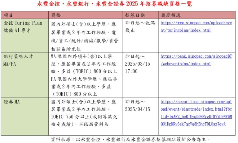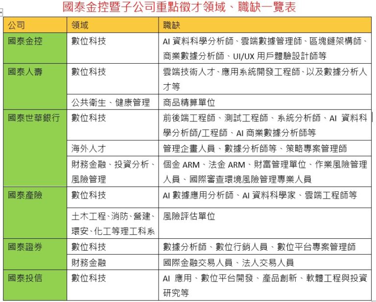 台新金控今年釋出超過3500個職缺,涵蓋數…