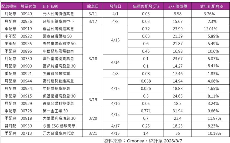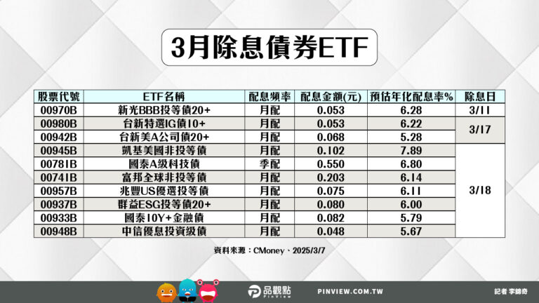 台股ETF三月除息大戲即將登場,還有17檔即…