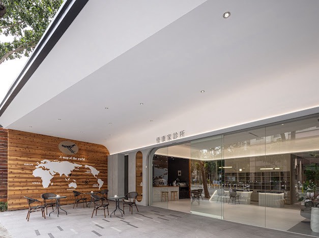 優康家診所大門入口,打造診所裡喝咖啡的…