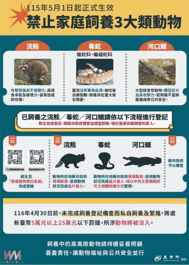 農業部公告禁止家庭飼養3大類動物。(圖/…