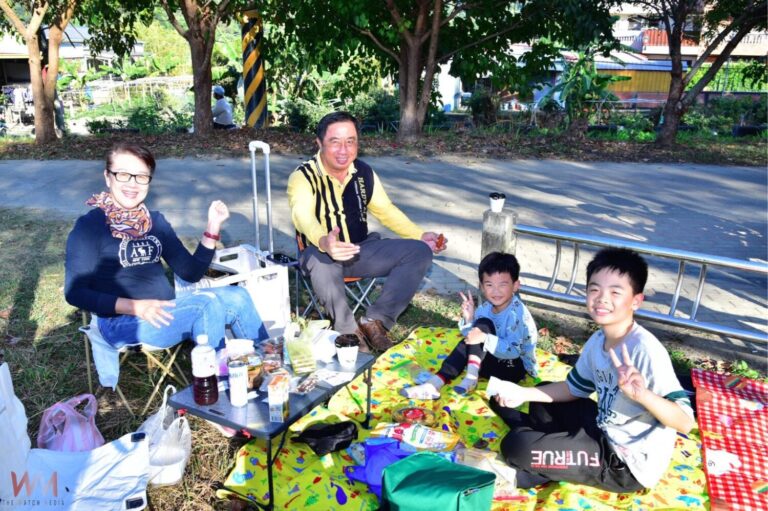 民眾自備野餐墊在和煦陽光下享受微風與音…