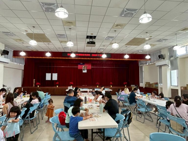 家長和幼童共同製作杯子蛋糕。(圖/記者…