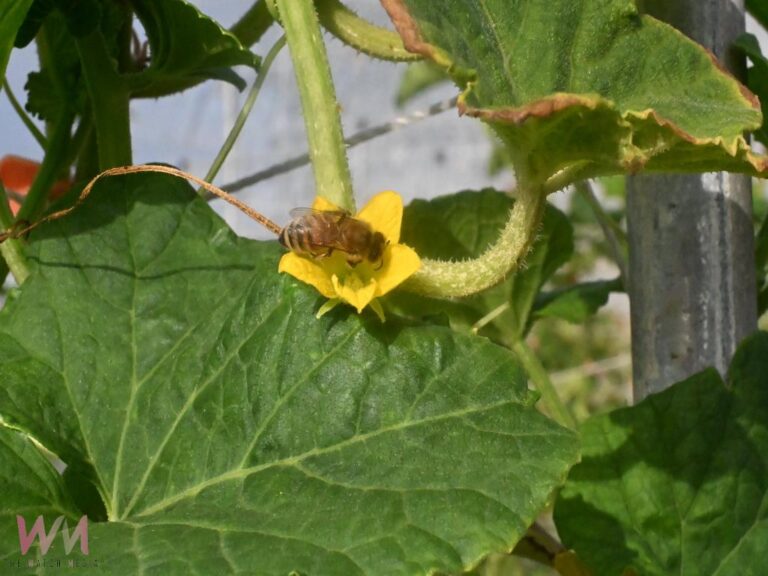 園區內漫天飛舞協助授粉的小蜜蜂,向消費…