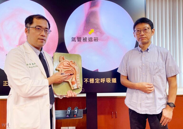 副主任王勁傑(左)說明,周先生(右)因舌底…