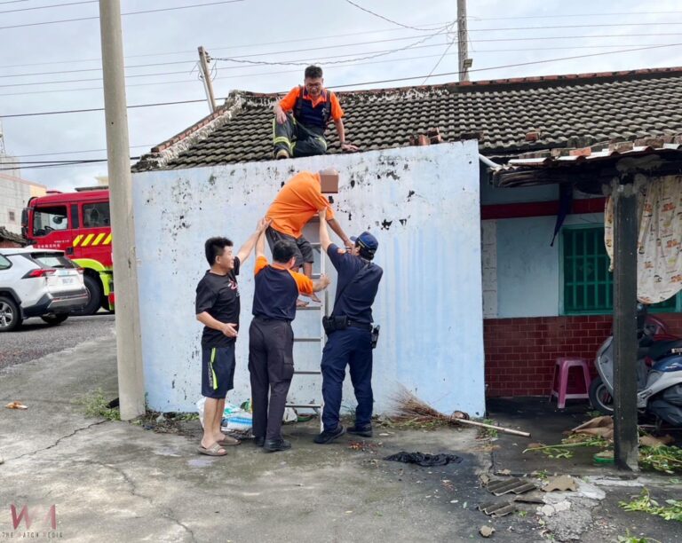 颱風過後老翁修繕受困屋頂,北港警聯手消…