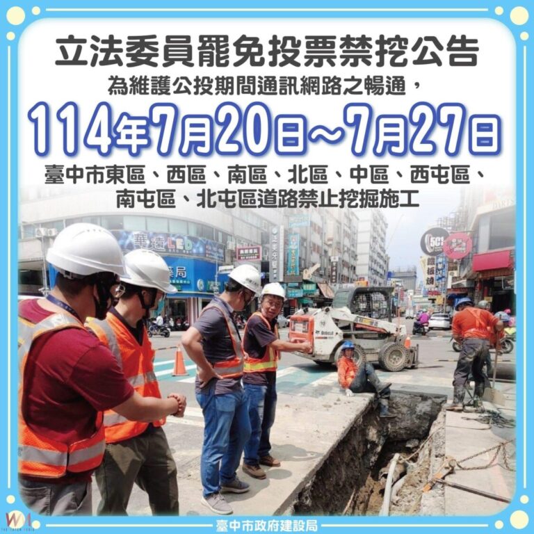 保障選務不中斷 中市府建設局公告7/20起八區道路禁挖施工