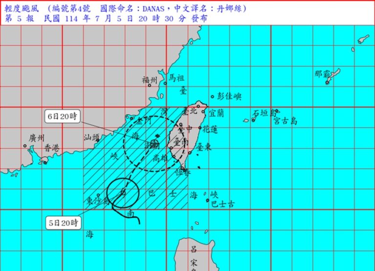 颱風丹娜絲來勢洶洶,中央氣象署於今(5日…