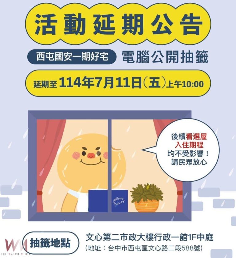 丹娜絲轉中颱 台中市住宅處:「西屯國安一期好宅」電腦抽籤延至7/11辦理