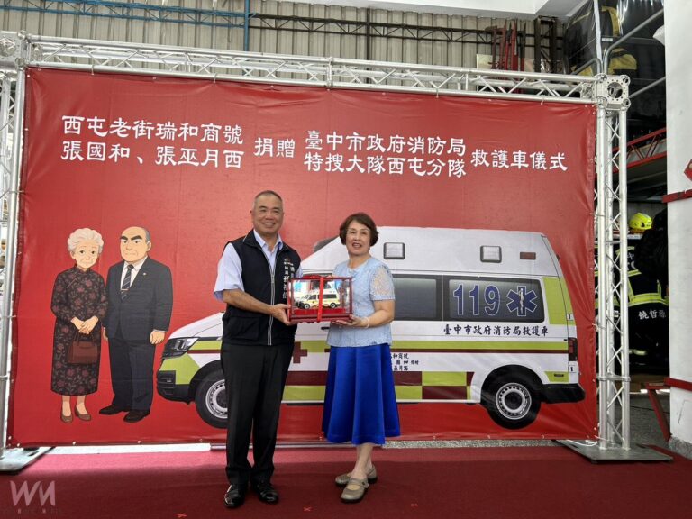 局長孫福佑致贈救護車模型予西屯老街瑞和…