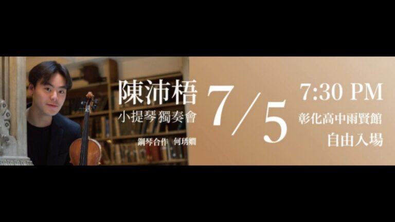 旅美小提琴家陳沛梧7月5日返鄉開奏 彰中雨賢館獨奏音樂會