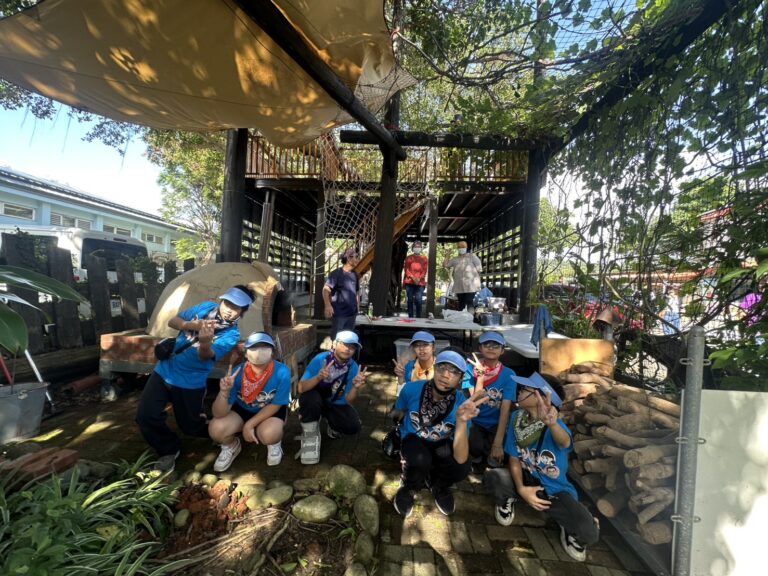 中興國小的小小導覽員在窯烤區熱情歡迎貴…