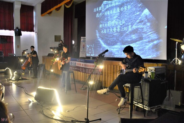 玫瑰墓樂團於嘉華中學熱烈演出。(圖/記…
