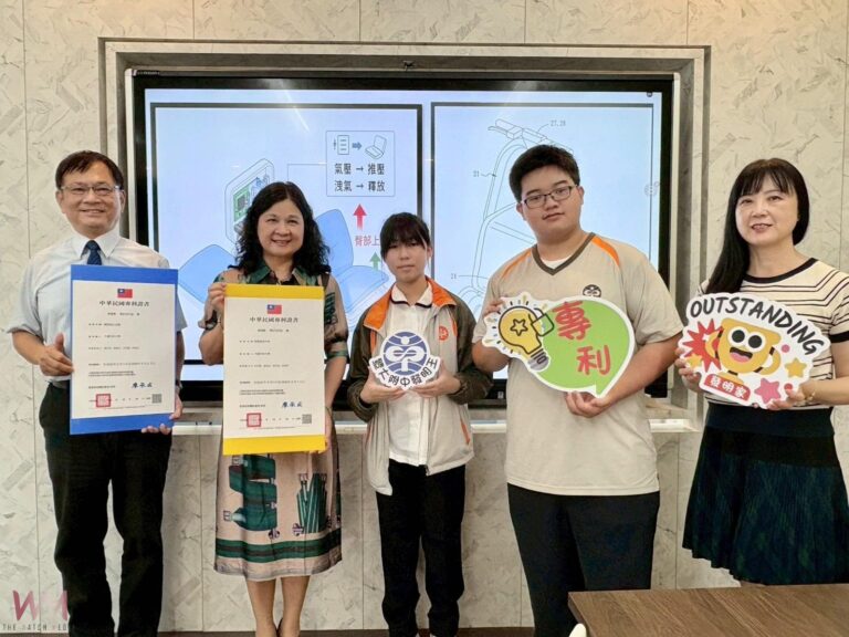 暨大附中學生古祐嘉(右2)、張卉淇(中),在…