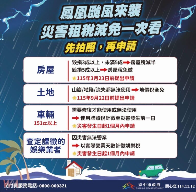 鳳凰颱風來襲,台中地稅局啟動災損減稅協…
