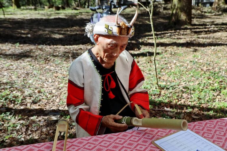 ▲在部落市集,聽耆老說故事,親手把玩竹製…
