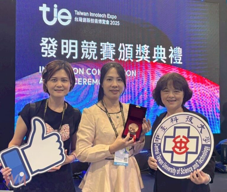 中臺科大黃微惠老師(右)與學生郭姿廷、蔡…