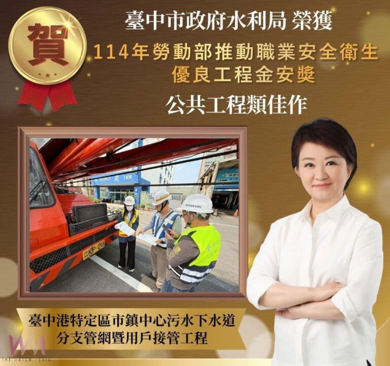 水利局強化港區建設 「台中港特定區污水下水道工程」榮獲金安獎肯定