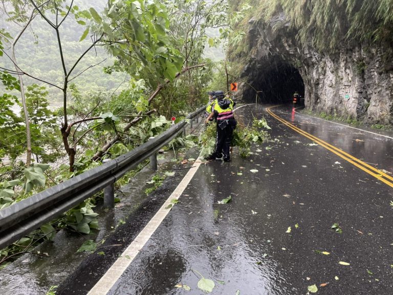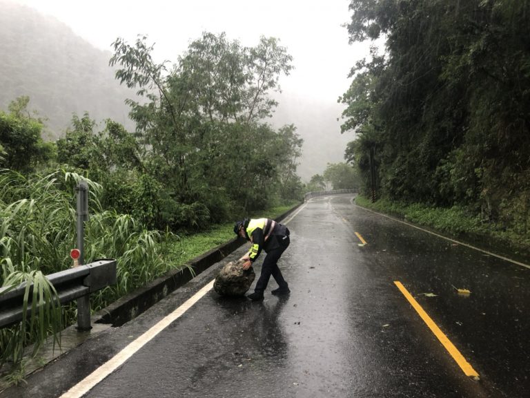 各處傳來豪雨成災消息|池上分駐冒風雨排列三角錐警戒遇路人