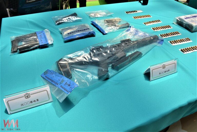 嘉市警展示所查扣之槍械毒品等證物。(圖…