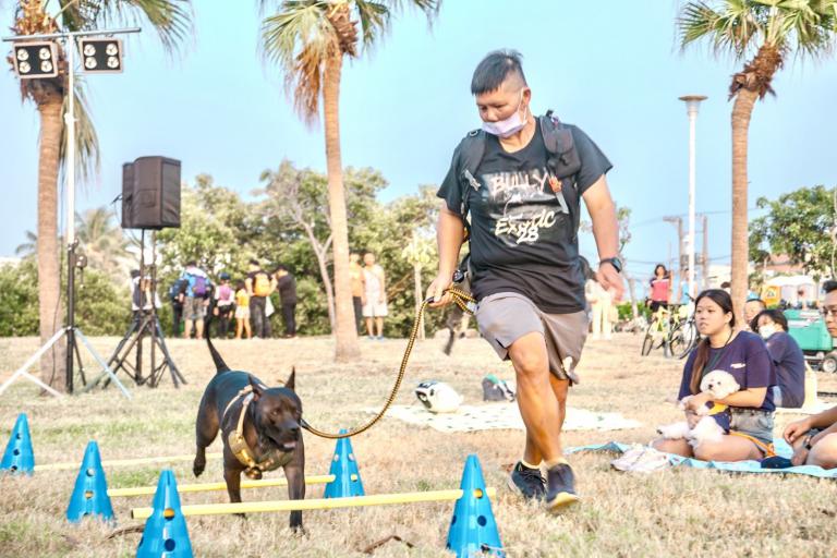 ▲林園海洋濕地公園草地派對現場,民眾與毛…