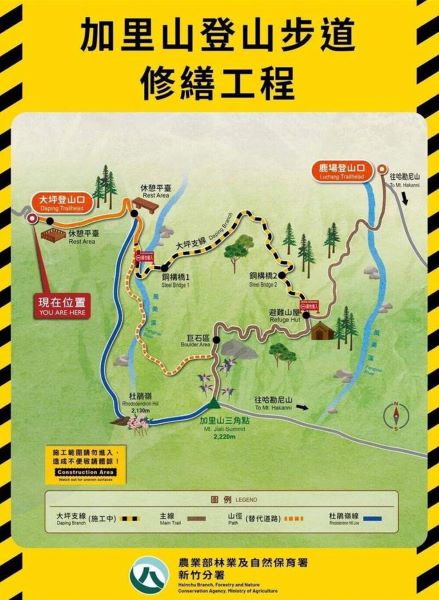▲加里山登山步道封閉期間入口告示(照片由…