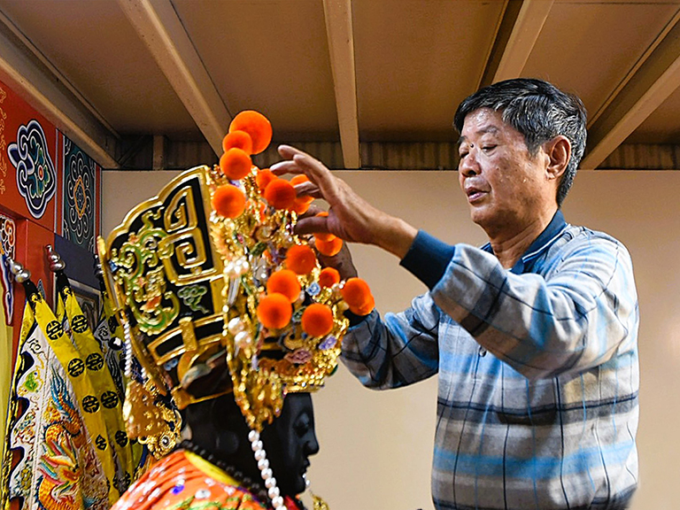 ▲他是臺南在地神帽藝師郭春福,專精金、銀…