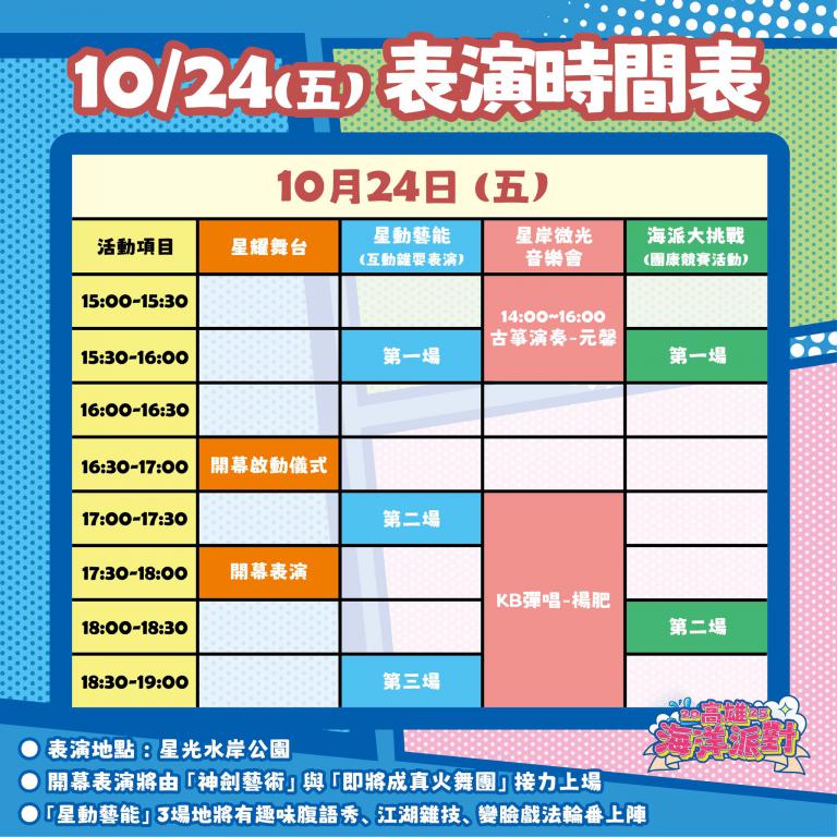 ▲2025高雄海洋派對開幕日演出時刻表。(圖/…