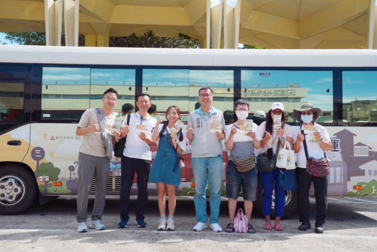 ▲竹市城銷處長嚴翊琦和民眾一起搭乘首日觀…