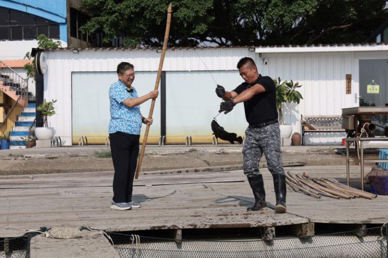 ▲縣長楊文科親自到訪藍鯨魚寮路線,體驗搏…