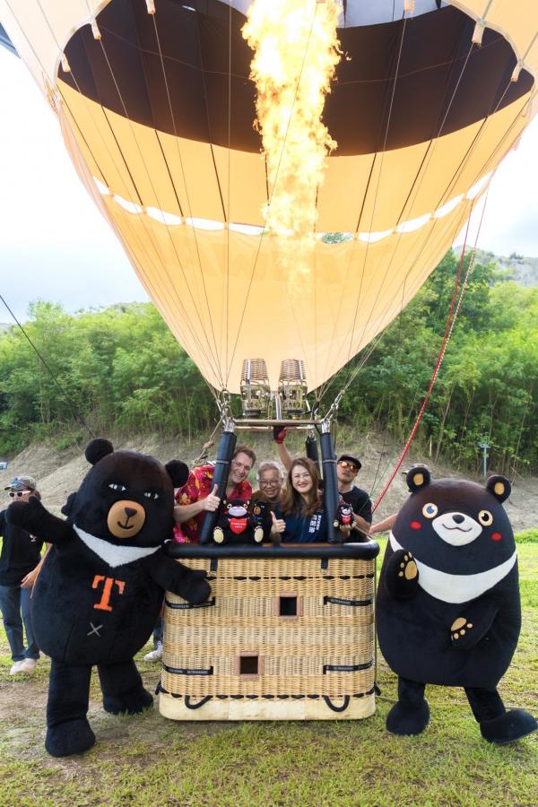 ▲貴賓在熱氣球籐籃合照留影。(圖/觀光局提…