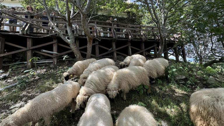 ▲清境農場瓦萊黑鼻羊在樹蔭下乘涼。(圖/…