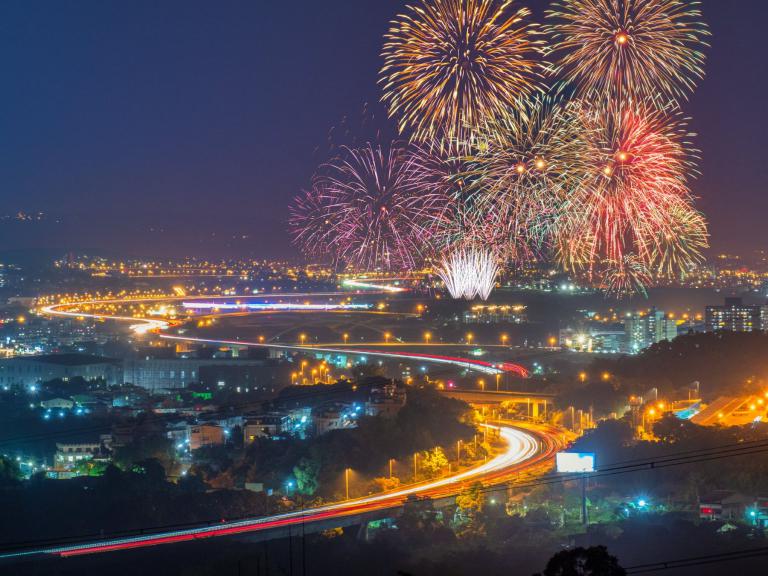 ▲南投國慶焰火16日晚間試放3分鐘,超過一…