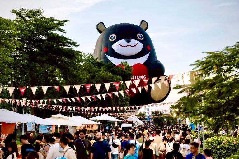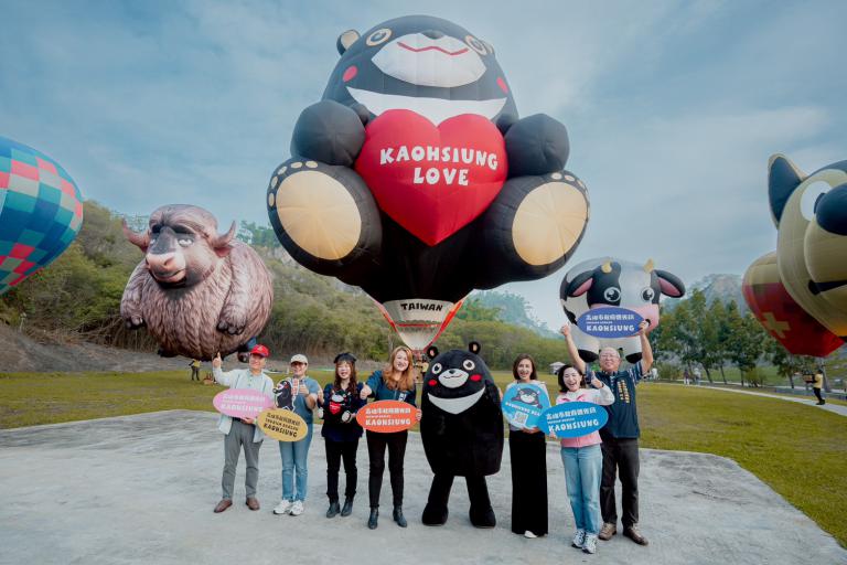 ▲高雄熊可愛造型於高雄市區升空超吸睛。(…