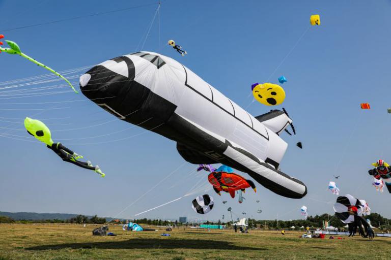 ▲️地面造景與各式風箏。(圖/記者張建奎攝)…