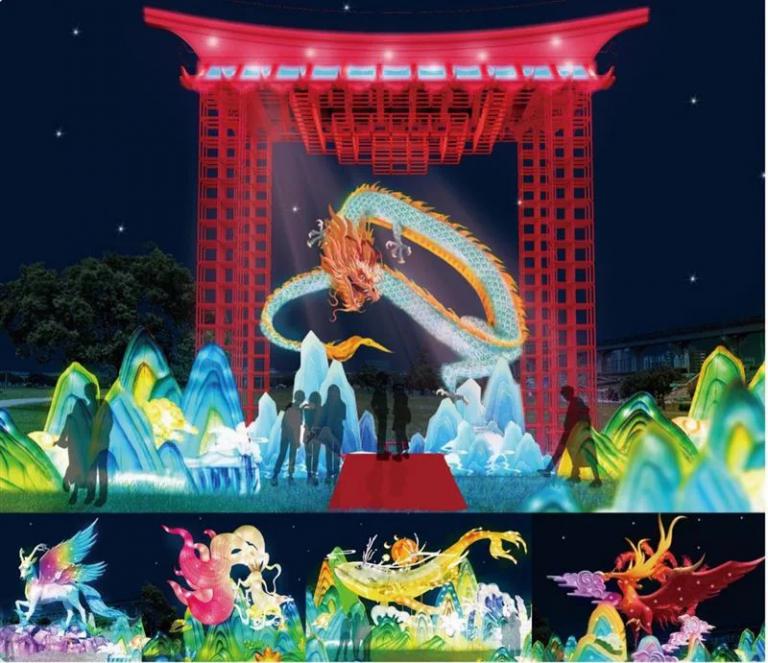 ▲12米龍宮青龍主燈與鳳凰、天馬、九尾狐、…