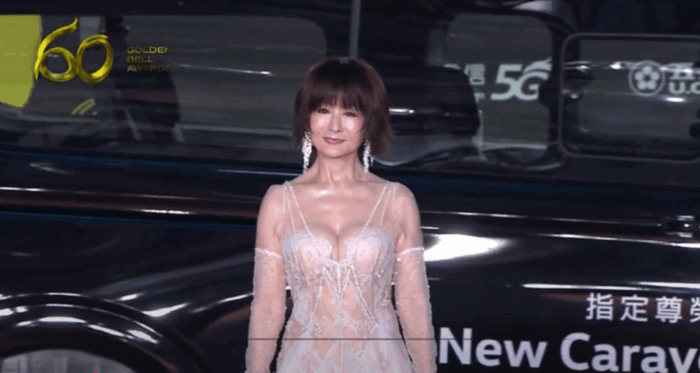 76歲的潘迎紫穿上雪白禮服走紅毯。(圖/…