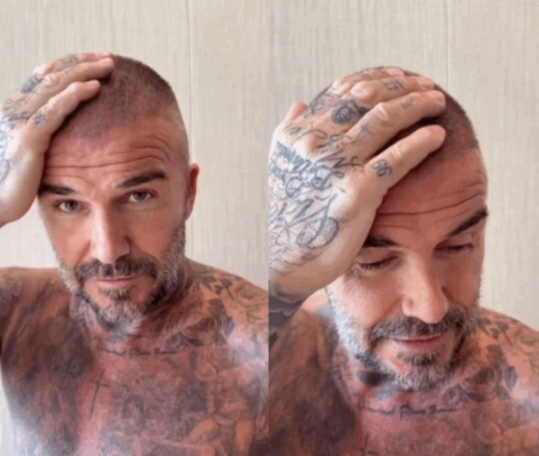 貝克漢自己剪髮,沒想到失手剃禿一大塊。…