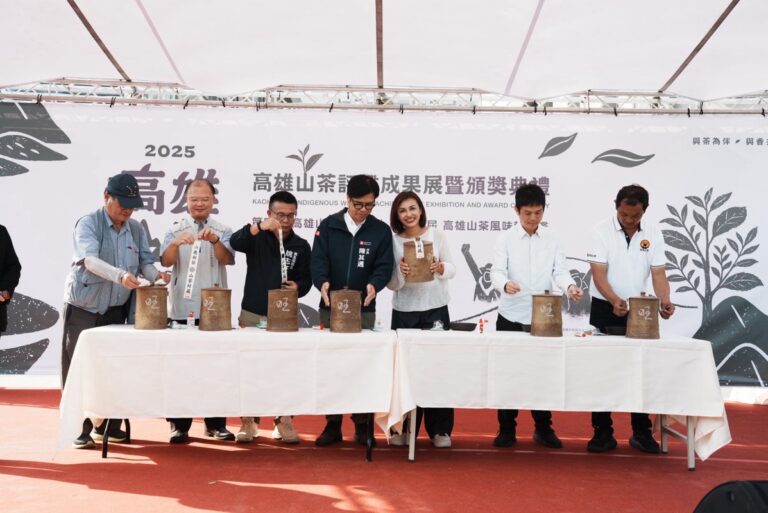 現場貴賓受邀上台,爲今年的高雄山茶隆重…