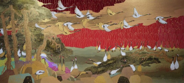 林伯禧‧白魚作品《鶴立心懷千里行》。圖/…