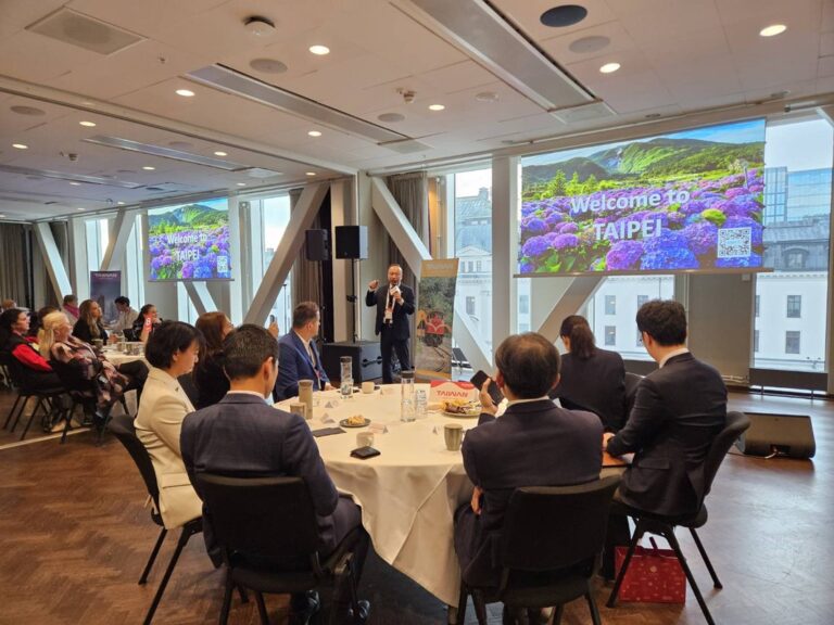 觀傳局在斯德哥爾摩推廣會進行簡報,向瑞…