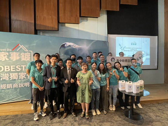 家事鍍與 NANOBEST 團隊於合作發表會象徵…