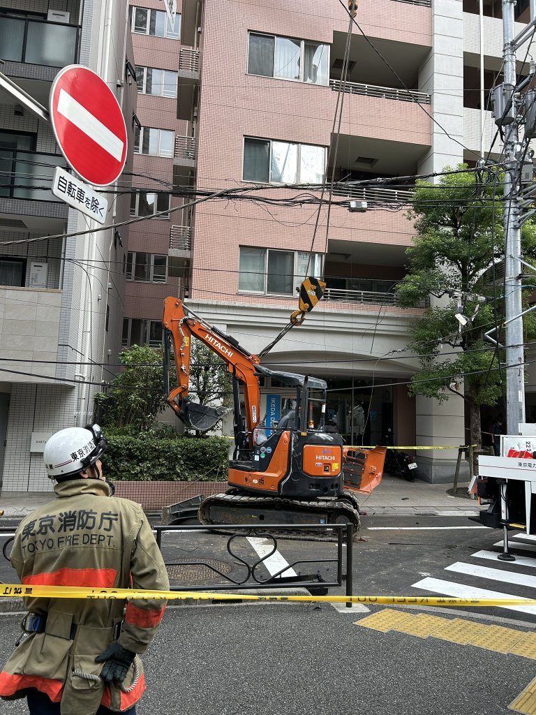 東京文京區驚險工安!起重機翻覆砸樓壓電…