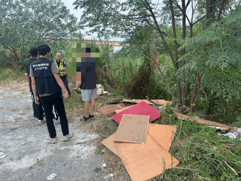圖說:彰化警方帶著亂丟廢棄物的林姓負責人…