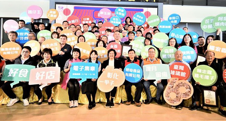 ▲彰化縣政府15日頒發77家60年以上老店榮譽…