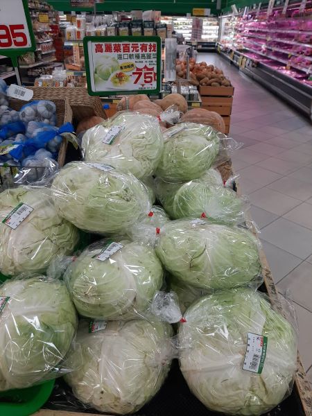 ▲竹北楓康超市進口高麗菜一顆只要75元。(…