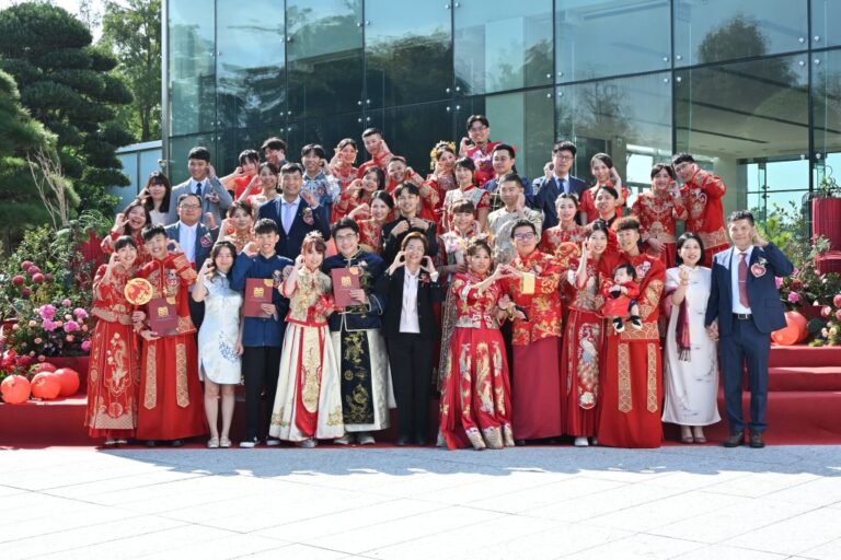 圖說:42對新人魚貫進入園區 受到眾人的祝…