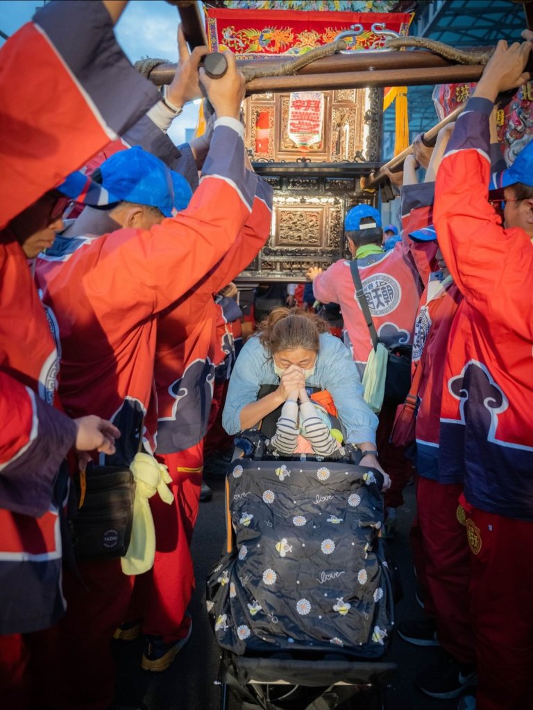 ▲北港媽南巡暖心!腦麻童「被抬轎等候」穿…