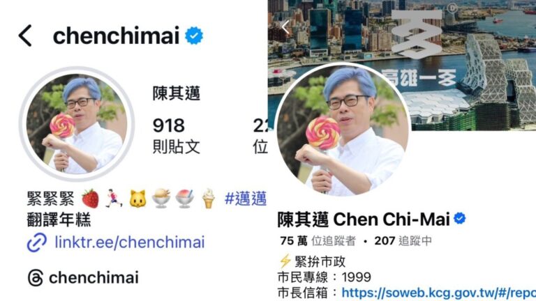 ▲陳其邁的社群大頭貼,頭髮已悄悄換上藍色…
